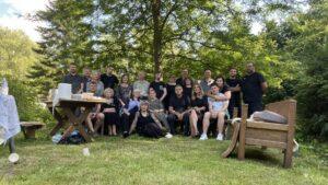 Audrius Mačiulis, Jono; Eugenija Mačiulienė/ Šimanskytė; Daiva Lynikienė/Mačiulytė, Jono; Antanina Mačiulienė/Butkutė; Vaidilutė Juškienė/Mačiulytė, Tomo; Šarūnas Mačiulis, Tomo laiko dukrą Indrę; už nugaros Arvydas Juška; Eglė ir Aistė Juškaitės; Aldona Mačiulienė/Maslauskaitė; Povilas Mačiulis, Petro; Gražina Astrauskienė/Rybelytė; Laurynas Mačiulis, Šarūno; Alfonsas Mačiulis, Petro; Žibutė Mačiulienė/Daukutė; Tomas Mačiulis, Arvydo; Titas Mačiulis, Arvydo ant Arvydo Mačiulio, Tomo rankų; Rima Mačiulytė, Tomo; sūnus Adas Budvytis ; Zigmantas Mačiulis, Tomo; Algimantas Steponavičius; Antanas Rybelis