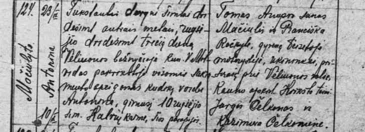 Antanina gimė 1922 metų rugsėjo 10 dieną ir mirė būdama 3 mėnesių nuo kokliušo 1923 metų vasario 19 dieną. Jos gimimo ir mirties metrikų kopijos prisegtos žemiau. Įdomu, kad metrikų įrašuose jinai įvardinta kaip Antonina