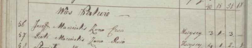 1810 metais Petrui ir Rožei gimė Marijona, 1812 metais Juozapas, 1814 metais Jurgis, 1815 metais Kotryna, 1818 metais Kazimieras, 1819 metais Petronėlė, 1822 metais Anupras (!) ir 1826 metais Agnieška vėliaus ištekėjusi už Martyno Masaičio.