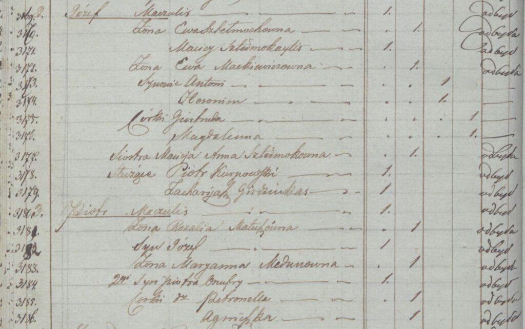 1826 metų nelabai detaliam gyventojų surašyme nurodyta, kad Juozapas jau gyvena savo ūkyje ir vedęs Ievą (iškarpa žemiau).