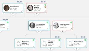 Iš kairės: Aldona Mačiulytė, Tomo; Vytauto Mackevičiaus sesuo Birutė; jaunas Zigmantas Mačiulis Tomo; Pranciška Mačiulienė (Ročkaitė); Petro Mačiulio, Tomo žmonos Agnės sesuo Birutė Ramonaitė; Pranciška ir Anelė Mačiulytės, Tomo; Tomas Mačiulis, Tomo; antroj eilėje: Juvenalis ir Petras Mačiuliai, Tomo