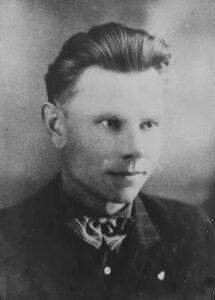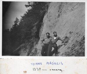 iš dešinės stovi pirmas Kazimieras Cvirka; antras Tomas Mačiulis, Tomo; trečias Pranciškus Šimanskis, Pranciškaus; ketvirtas Petras Mačiulis, Tomo;
